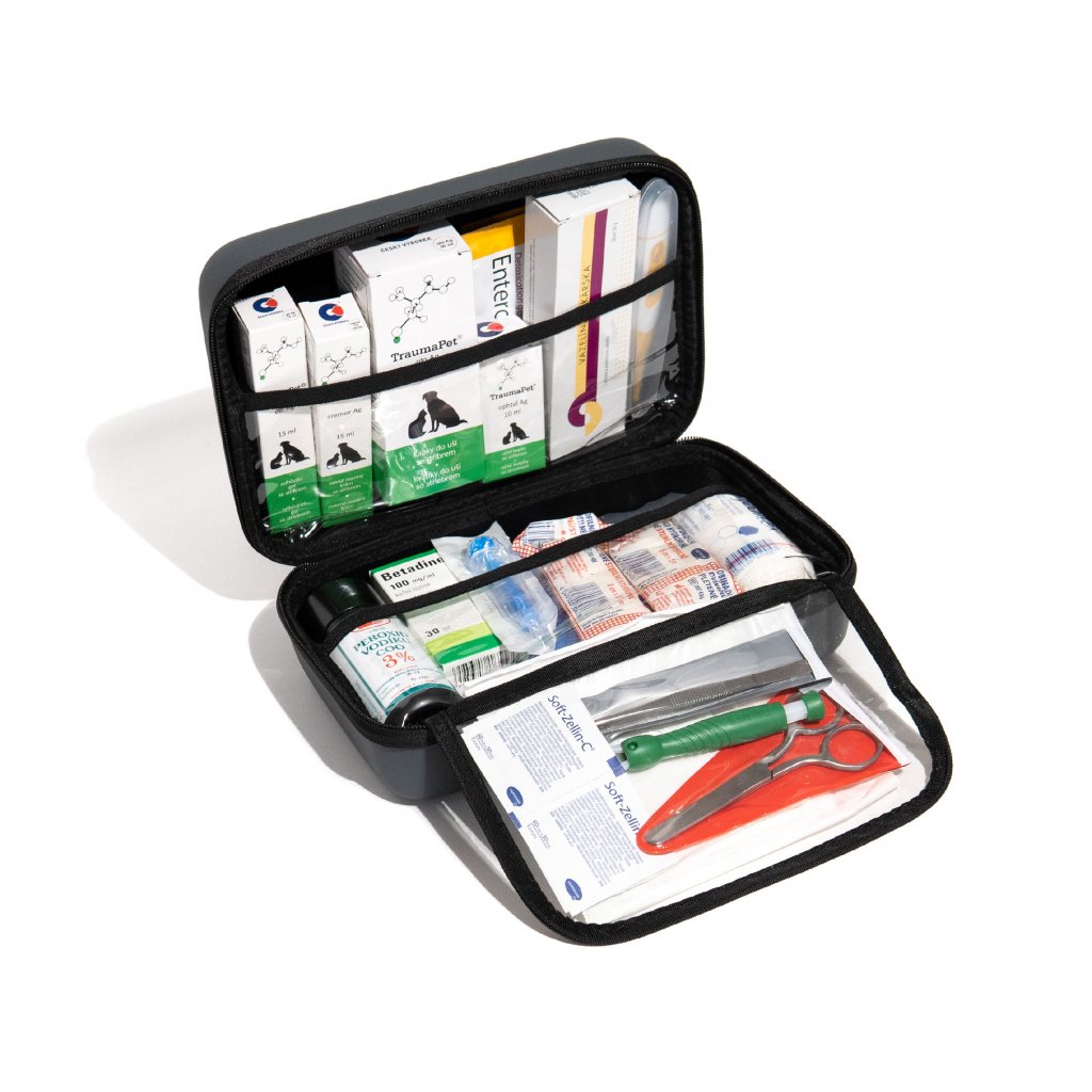 První pomoc než dorazíte k veterináři. Lékárnička, která není jen na úrazy, ale řeší běžnou péči a základní problémy psů a koček. Bolavé ucho, nečistota v očích, úraz, zažívací obtíže, otrava, dehydratace, rány, klíšťata.... Produkty na všechny tyto problémy a mnohem více najdete v kufříku vhodném na doma i na cesty.